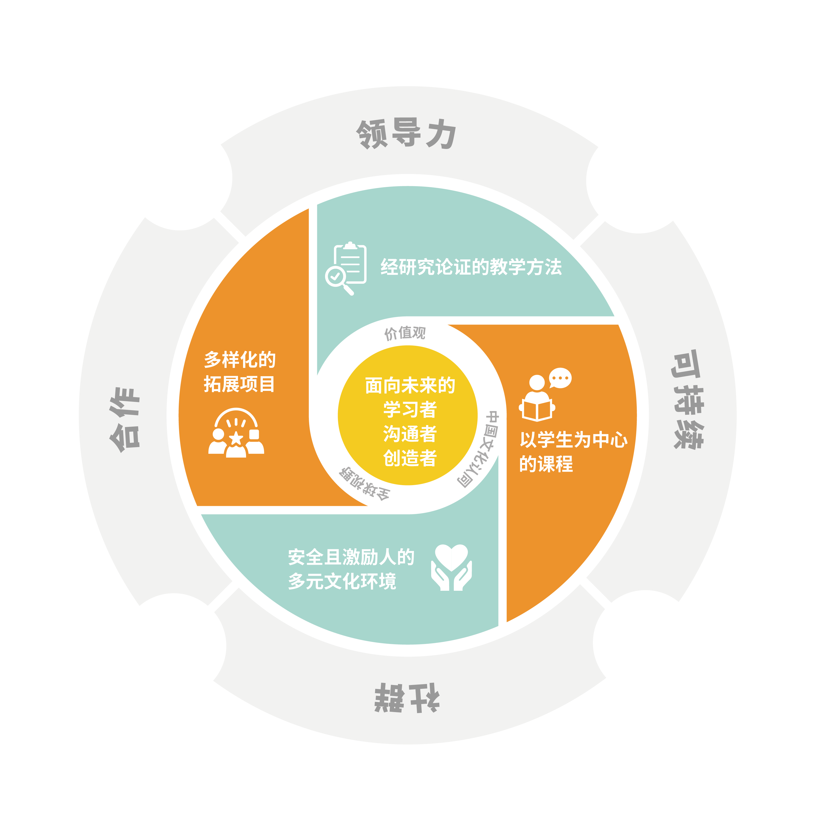 Our bilingual education model is based on four foundational principles that guide us to achieve common goals – inclusive leadership that empowers innovation, agile collaboration that maximises success, a vibrant community that builds meaningful partnerships and actionable sustainability in and out of campus.